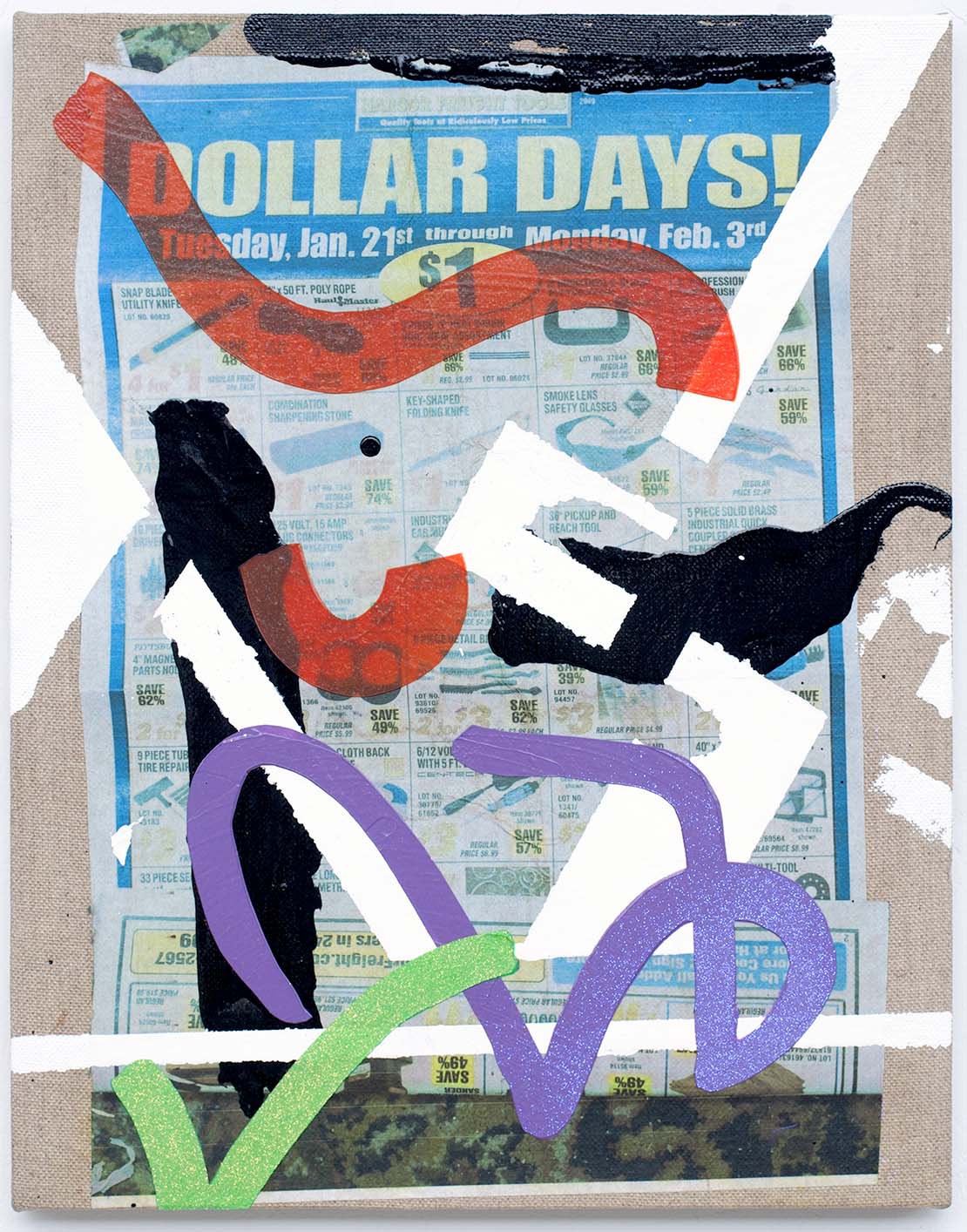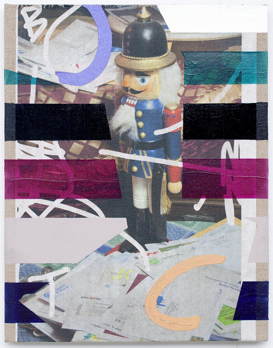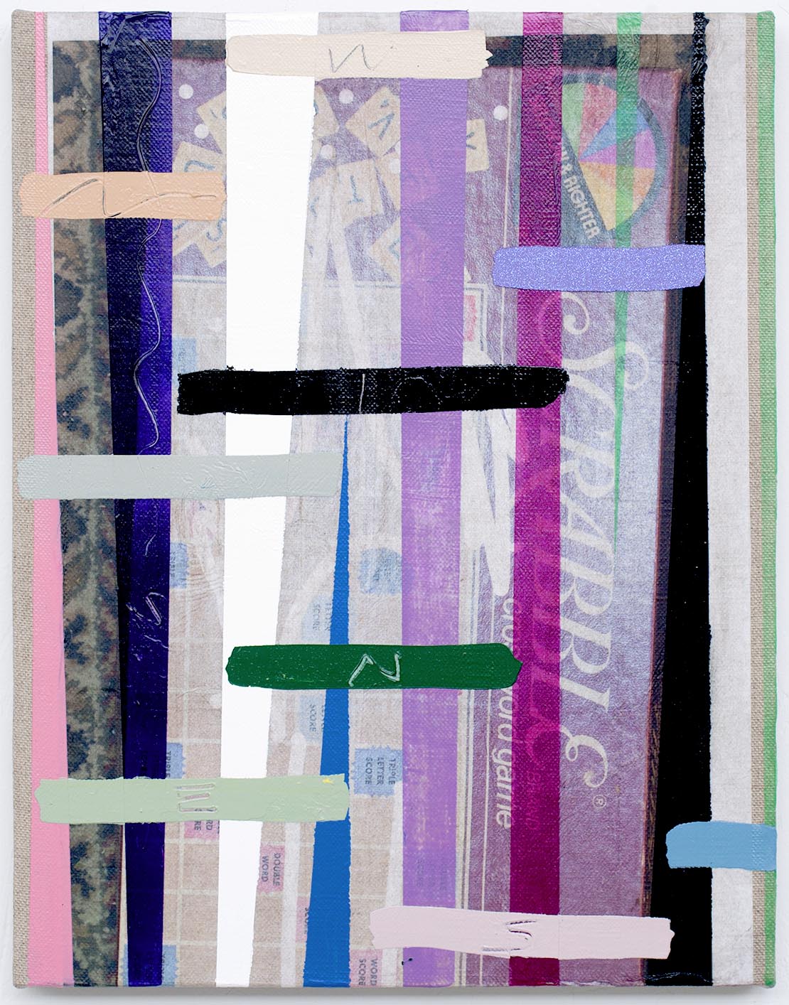 15 Paintings, each 17 1/8" x 13 9/16", acrylic, latex enamel, and inkjet-print collage on linen, 2014