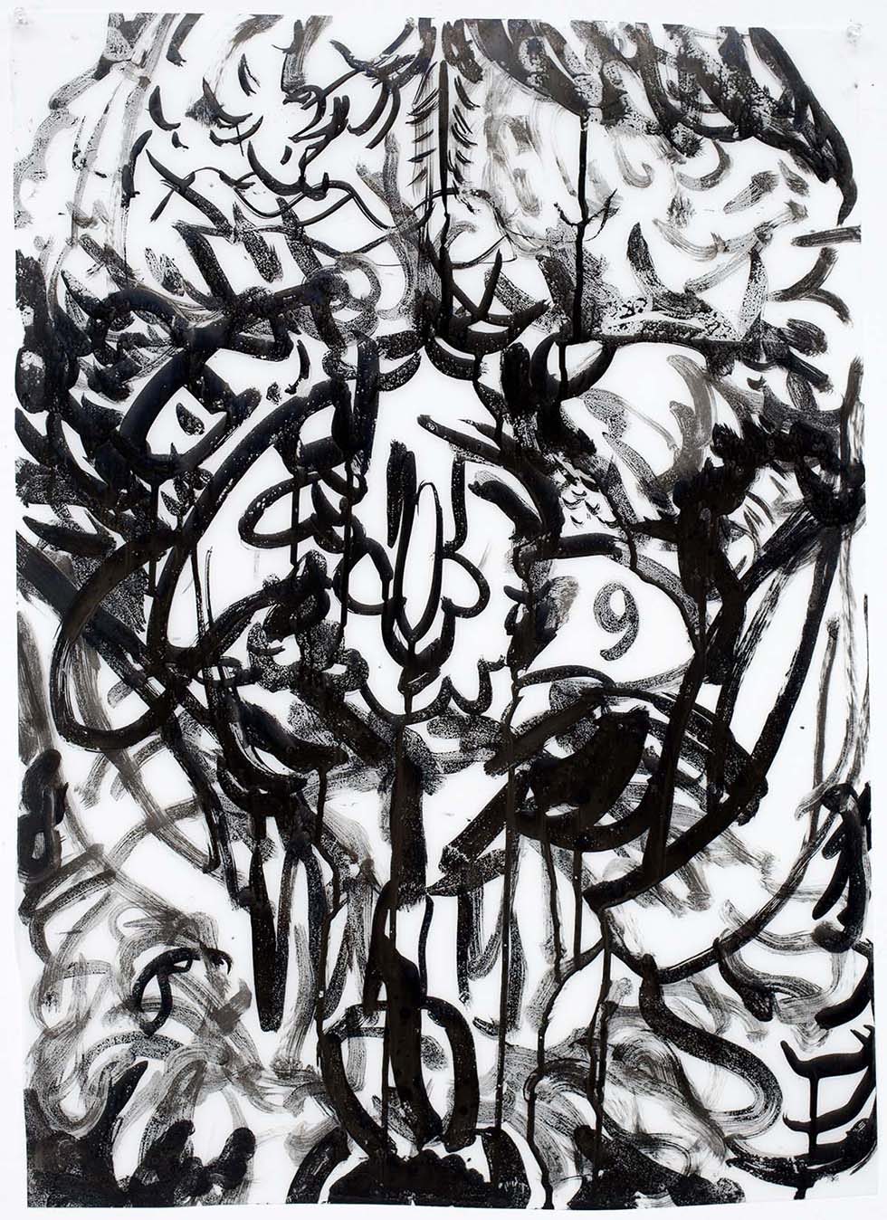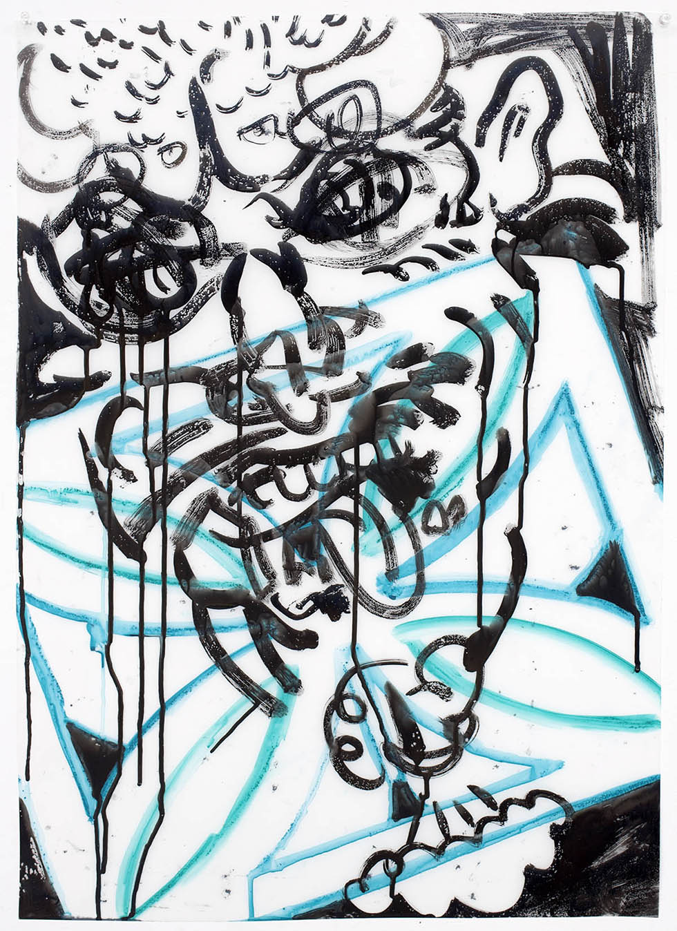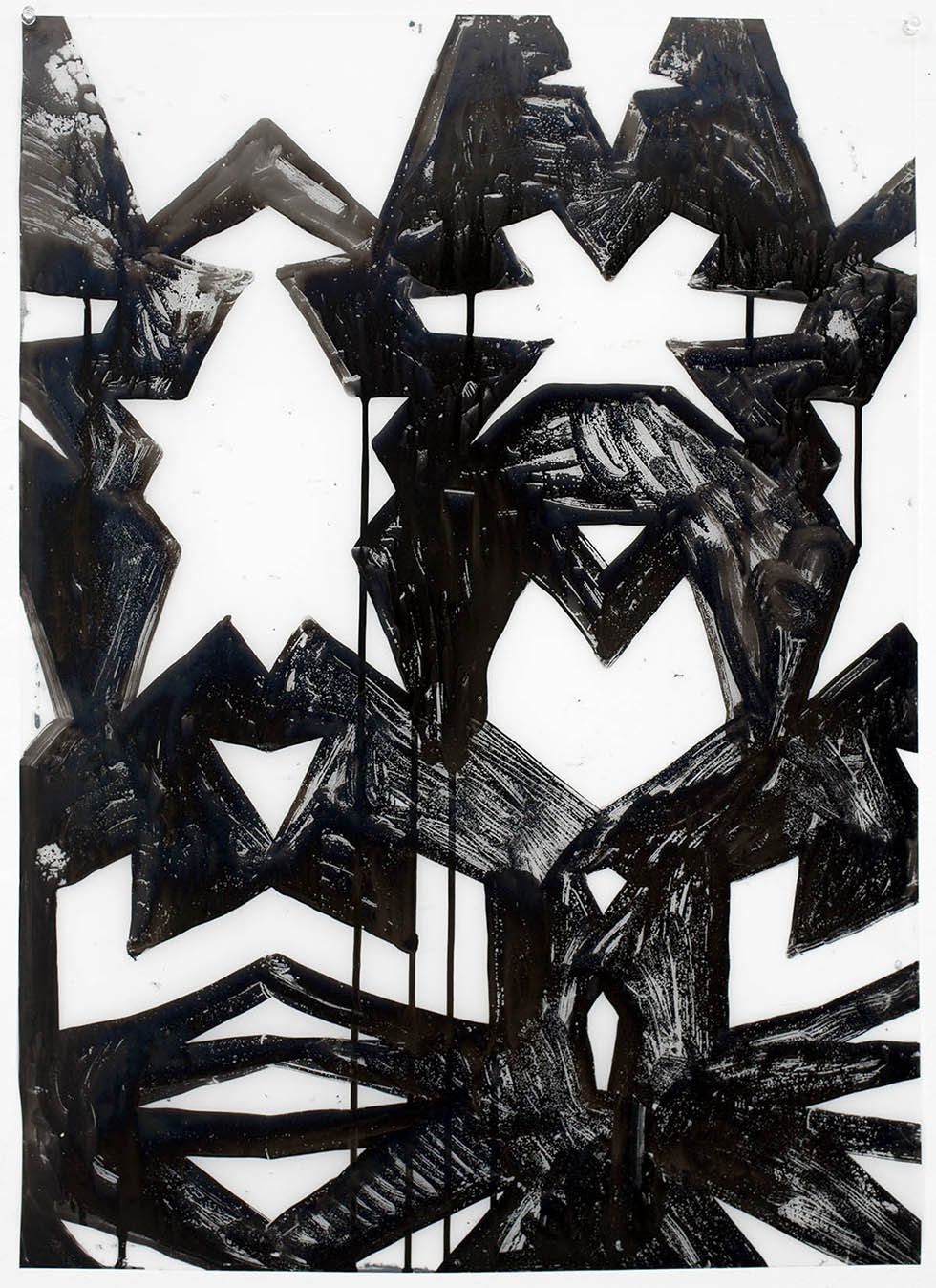 Nasty Man-face Block, acrylic and sumi ink on mylar, 2012