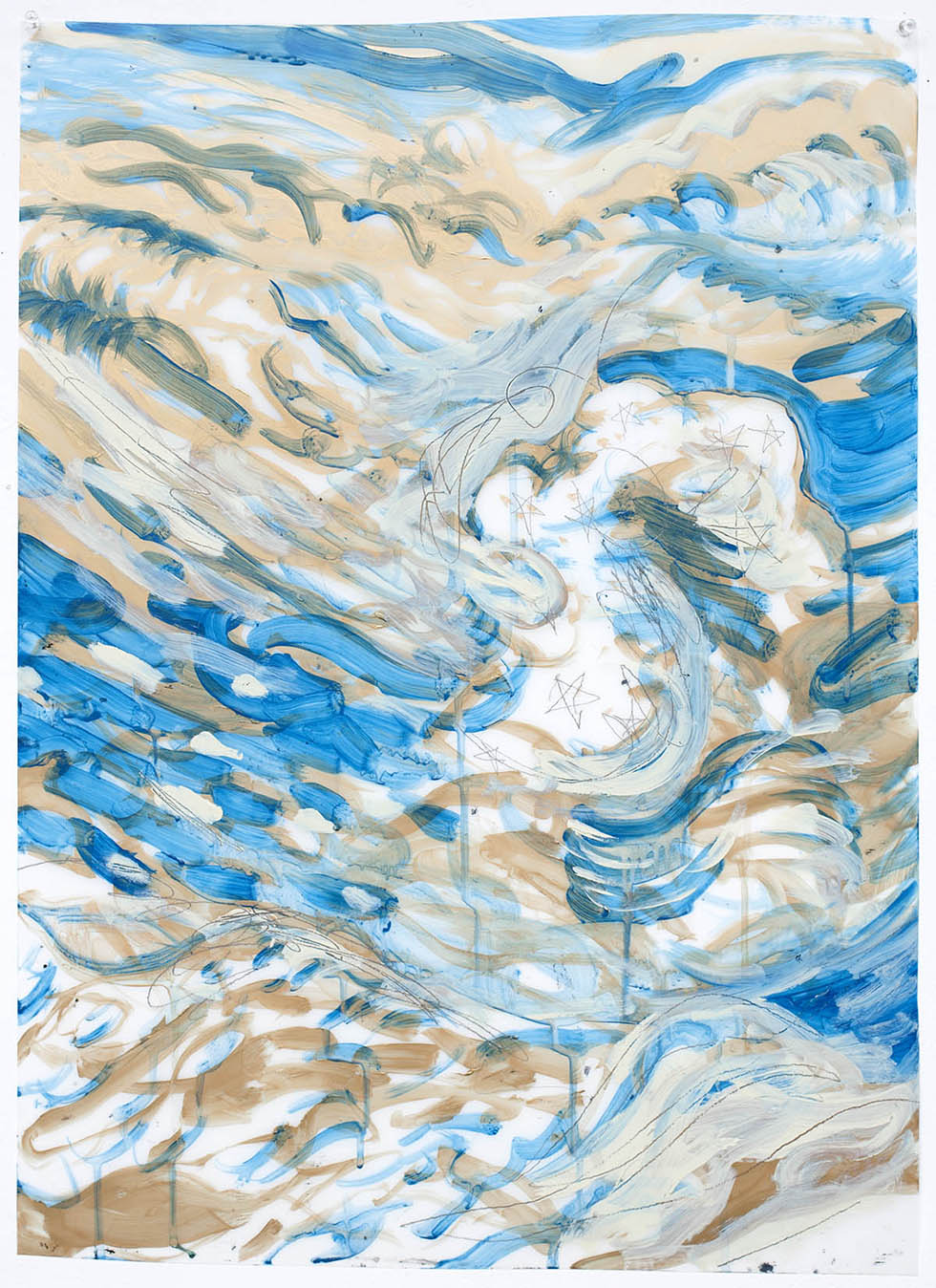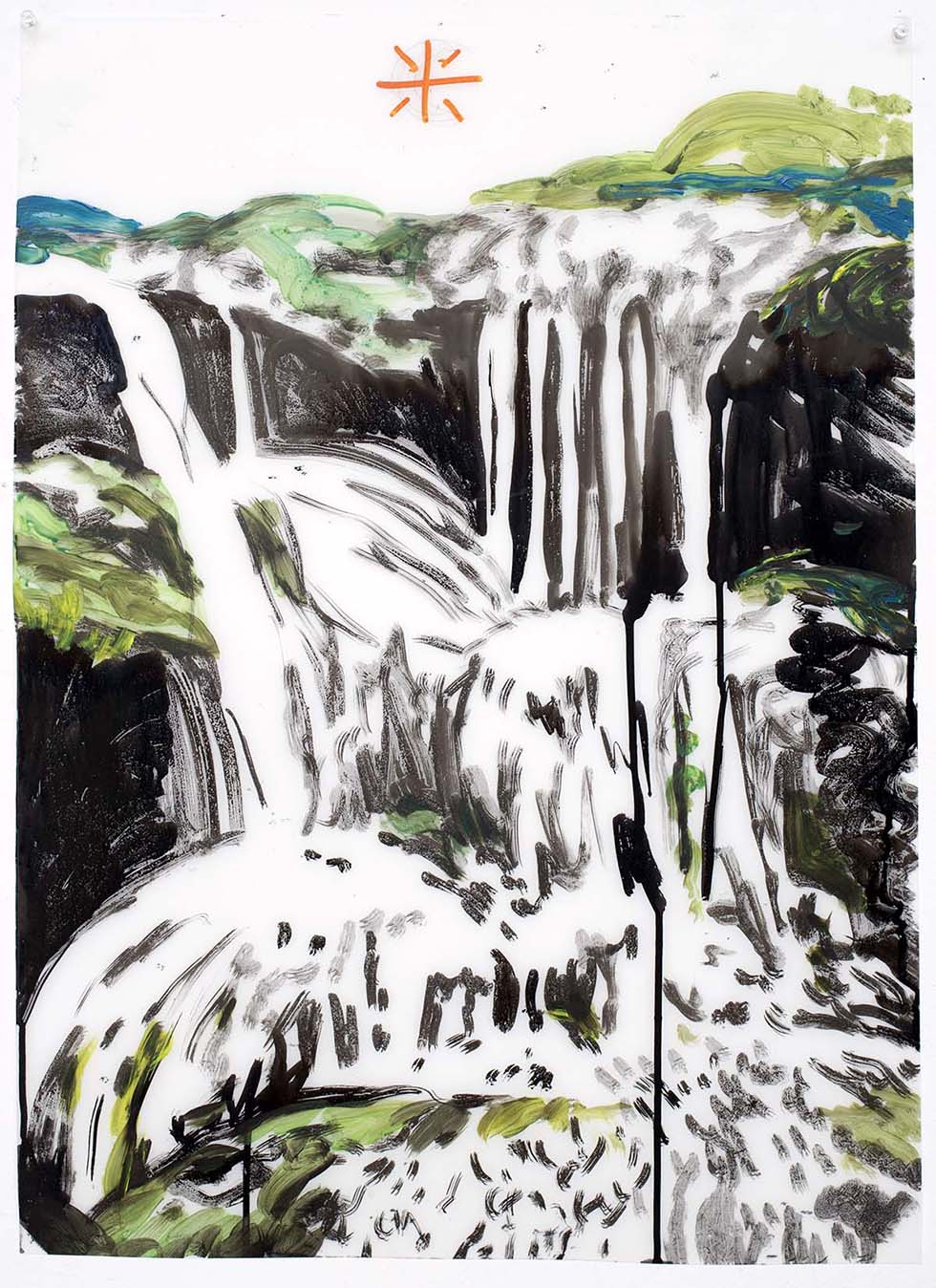 Starlite Waterfall, acrylic and suni ink on mylar, 2012