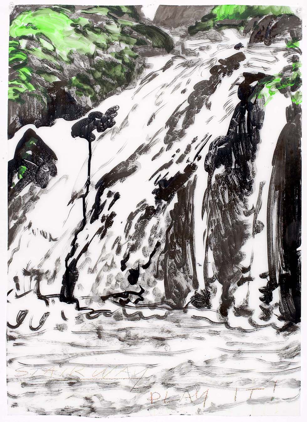 Stairway——Play It, acrylic, color pencil, and sumi ink on mylar, 2012
