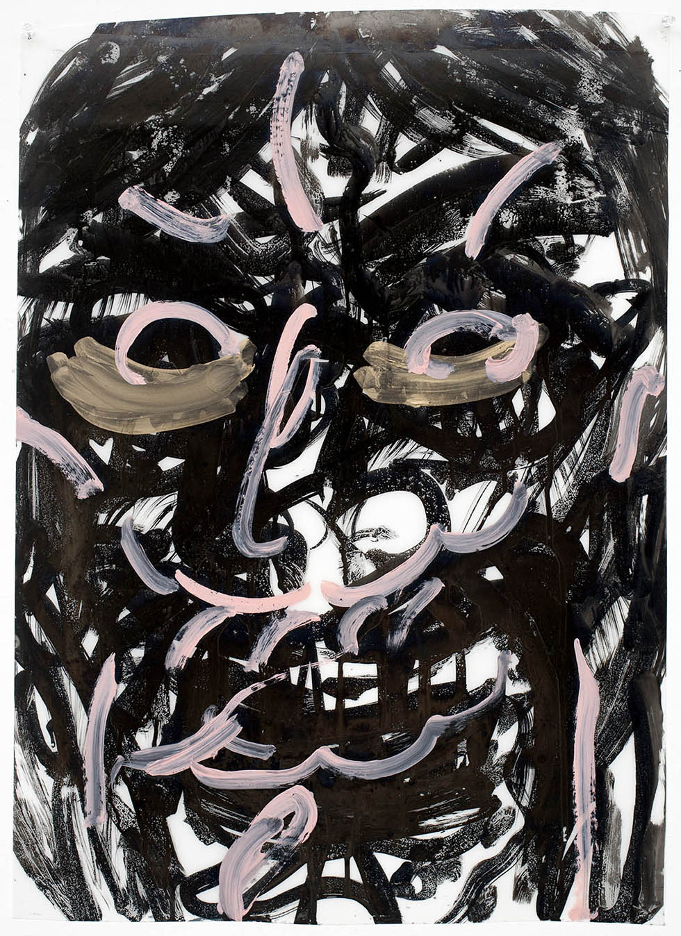 Face w/ Green, acrylic and sumi ink on mylar, 2012
