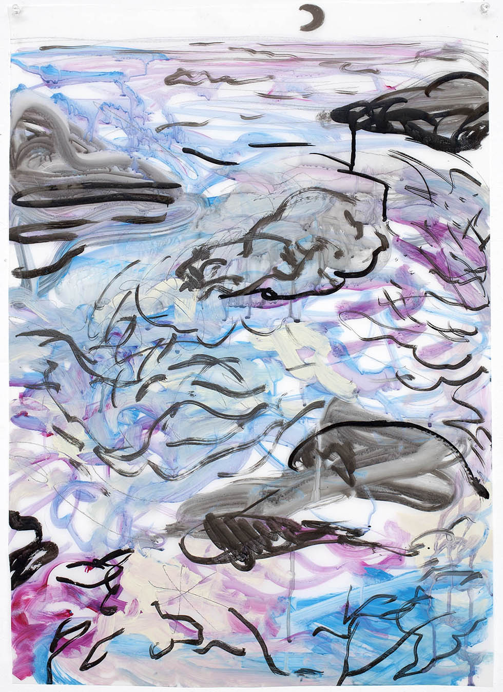 Moon-Rocks-Water, acrylic,graphite, sumi ink on mylar, 2012