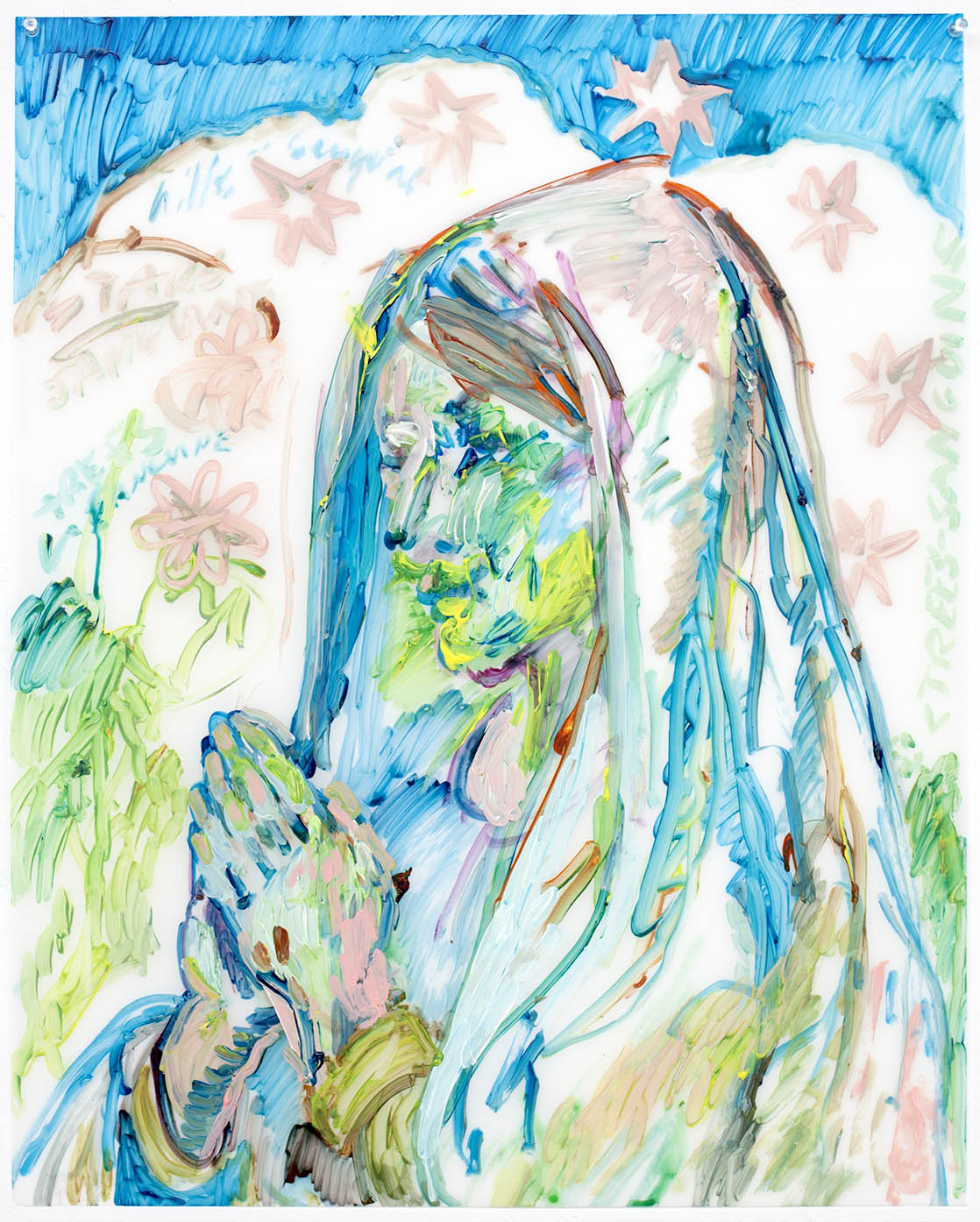 Pretty Praying Mary, 25"x20", acrylic on mylar, 2013